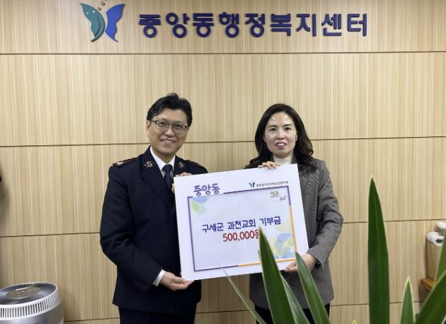 | ▲ 과천시 중앙동, 구세군 과천교회로부터 취약계층 지원 성금 50만 원 기부받아 |