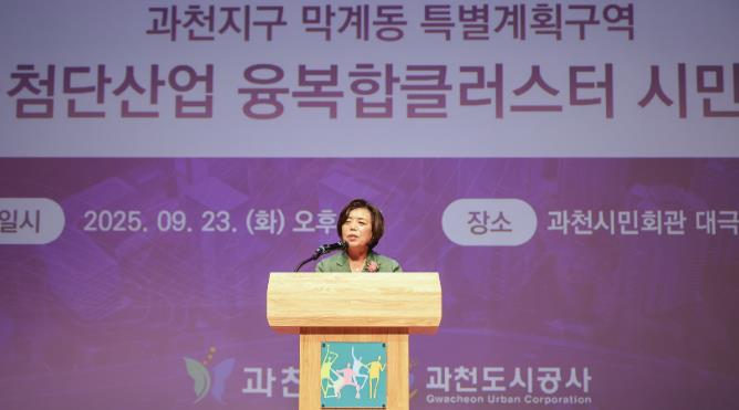 [무한뉴스=손성기 기자] 과천시는 지난 23일 시민회관 대극장에서 ‘막계동 특별계획구역 개발사업 시민설명회’를 열고, 종합병원 건립을 포함한 첨단 융복합 클러스터 조성 계획을 시민들에게 공개했다.