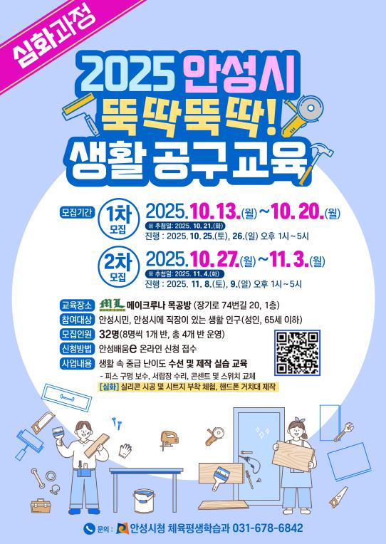 ▲ 안성시, 생활 기술 한 단계 업! '뚝딱뚝딱 생활 공구[심화과정] 교육' 참가자 모집 |
