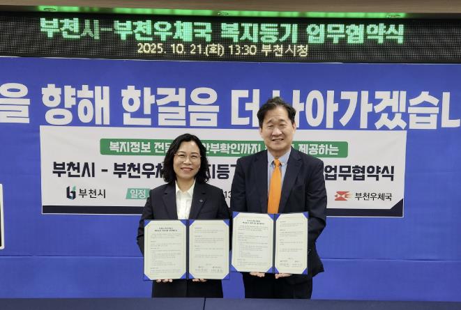 [무한뉴스=정승훈 기자] 부천시는 지난 21일 부천우체국과 ‘복지등기 서비스 지원’을 위한 업무협약을 맺고, 우편배송망을 활용해 복지사각지대를 발굴하고 위기가구를 지원하는 공공협력 체계를 본격적으로 가동한다.