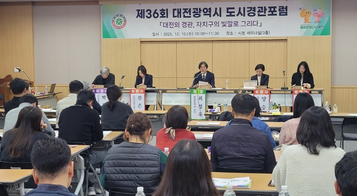 이날 주제 발표를 맡은 박준완 ㈜오씨에스도시건축 이사는 대전시의 강점인 다양한 경관 요소에 대한 실천적 과제를 제시하고 차별화된 5개구의 특색을 담아내는 대전시의 경관 미래상과 전략을 제시했다.