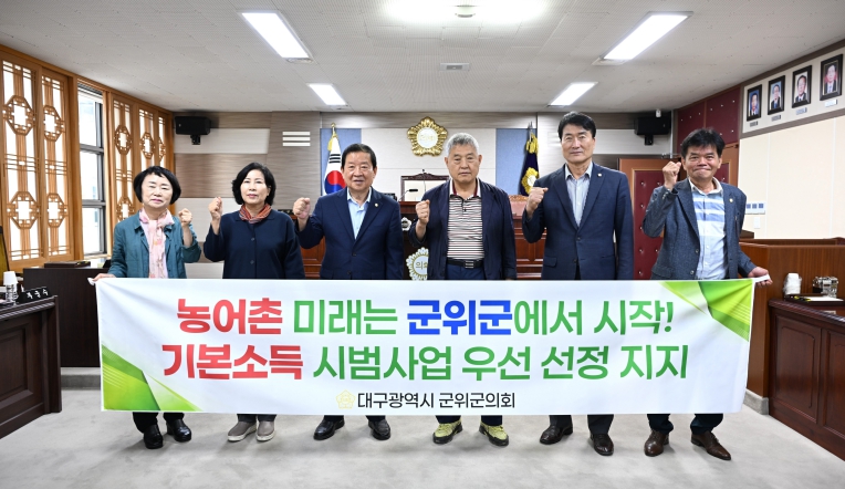 군위군의회는 “농어촌 기본소득 시범사업은 단순한 지원사업이 아니라 소멸위기 농촌의 지속 가능성을 담보할 국가·지방정부의 책무”라며, “군위군은 전국 최고의 지방소멸위험 농촌 지역인 만큼, 반드시 시범사업 최우선 지역으로 선정되어야 한다”고 강조했다.