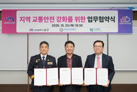 [무한뉴스=최진수 기자] 부산 남구는 지난 10월 23일, 부산 남부경찰서 및 도로교통공단 부산광역시지부와 함께‘지역 교통안전 강화를 위한 업무협약’을 체결했다고 밝혔다.