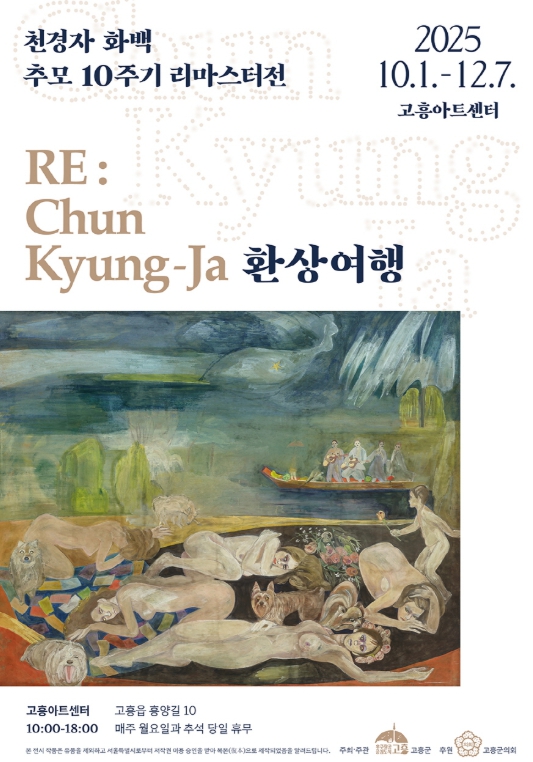 [무한뉴스=정민정 기자] 고흥군은 오는 10월 1일부터 12월 7일까지 고흥아트센터에서 고흥이 낳은 세계적인 화가 고(故) 천경자 화백 추모 10주기 리마스터전 'RE:Chun Kyung-Ja 환상여행'을 개최하며, 10월 2일 오후 2시 고흥아트센터 1층에서 전시 개막식을 연다고 밝혔다.