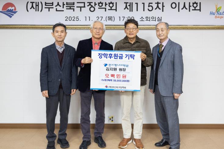 [무한뉴스=최진수 기자] 부산 북구는 최근 한사랑내과병원 김지원 원장이 (재)부산북구장학회에 장학기금 500만 원을 기탁했다고 밝혔다.