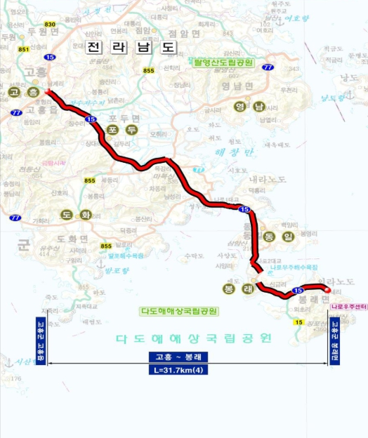 [무한뉴스=양현명 기자] 국토교통부는 8월 21일 열린 재정사업평가위원회(기획재정부 주관)에서 신속 예비타당성조사를 통과한 ‘국도 15호선 고흥~봉래 확장사업’의 신속한 후속절차 추진을 위하여 『제5차 국도・국지도 건설계획(2021~2025)』을 10월 30일 변경・고시할 예정이다.