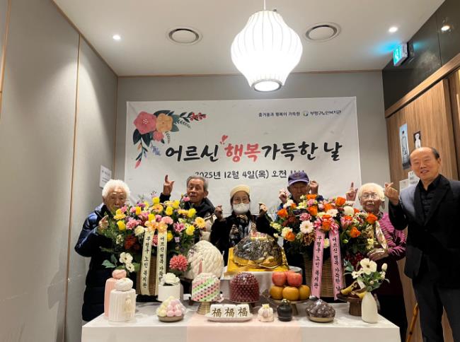 [무한뉴스=정승훈 기자] 부평구노인복지관은 12월 4일, 부평구 관내 모 음식점에서 노인 맞춤돌봄서비스 사업 참여자 중 88세 이상 어르신 40명을 대상으로 건강과 행복을 기원하는 ‘어르신 행복 가득한 날’ 행사를 성황리에 진행했다고 밝혔다.