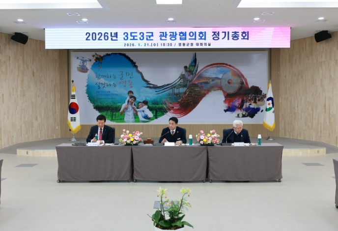 [무한뉴스=정민정 기자] 충북 영동군은 21일 영동군청 대회의실에서 2026년 3도3군 관광협의회 정기총회를 열어 지난해 성과를 공유하고 올해 공동 관광사업 추진 방향을 논의했다.
