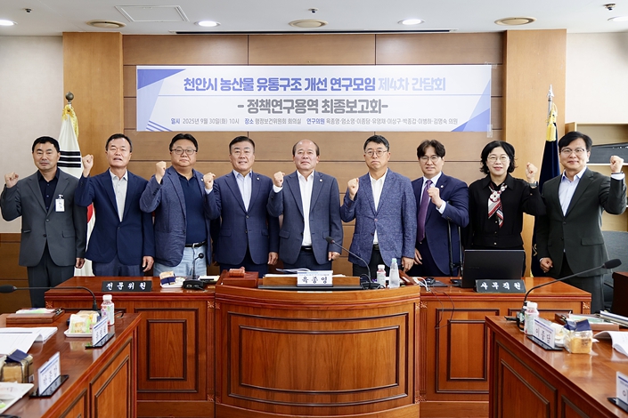 [무한뉴스=정민정 기자] 천안시의회 농산물 유통구조 개선 연구모임이 9월 30일 오전 10시 의회 행정보건위원회 회의실에서 7개월간의 연구 성과를 담은 최종보고회를 개최했다.