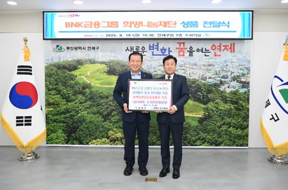 [무한뉴스=최진수 기자] 연제구는 9월 19일 BNK금융그룹 희망나눔재단으로부터 저소득 취약계층을 위한 동백전 선불카드(부산지역화폐 2,300만 원 상당)를 기탁받았다.