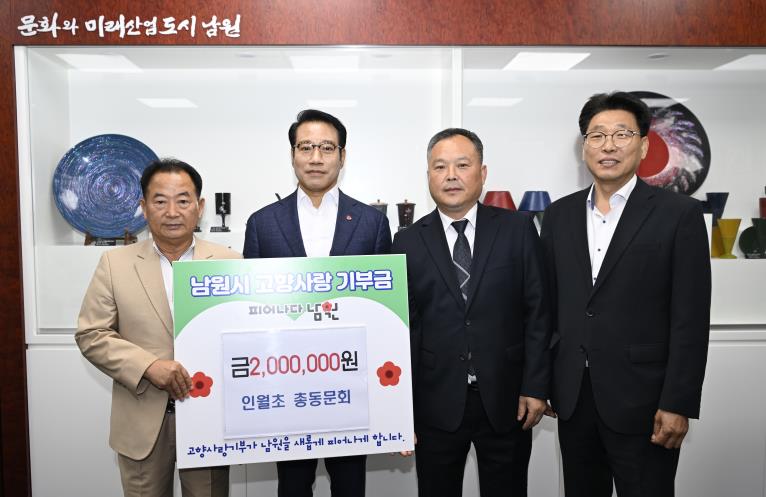 김종진 회장은 “1925년 개교한 인월초등학교가 자랑스러운 100주년을 맞이하여 남원에 고향사랑기부금을 전달하게 된 것은, 남원시에서 자라나는 새싹들을 위한 인재 육성 사업을 잘 추진해줄 것이라는 믿음이 있기 때문”이라며, “기부금을 좋은 곳에 활용해주시기 바란다”고 소감을 밝혔다.