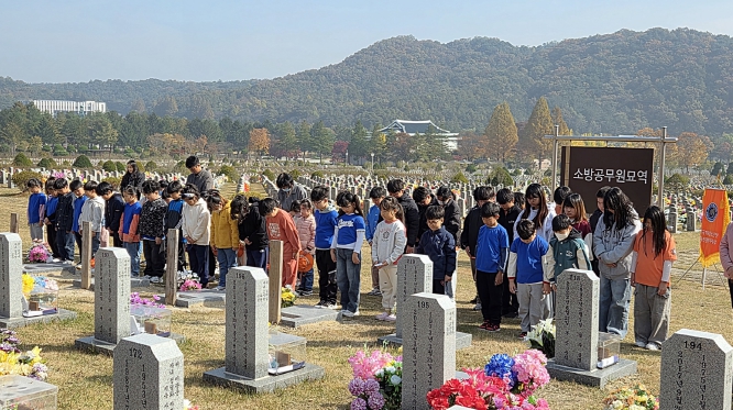 [무한뉴스=정민정 기자] 대전소방본부는 6일 오전 한국119청소년단 대전지부 소속 초등학생 단원과 지도교사, 소방공무원 등 80여 명이 국립대전현충원을 방문해 순직소방관 묘역 참배행사를 진행했다고 6일 밝혔다.