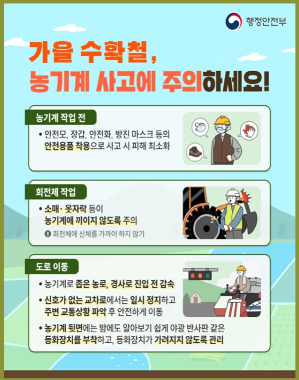 매년 가을철에는 경운기·트랙터 등 농기계 사용이 급증하면서 안전부주의로 인한 사고가 빈번하게 발생하고 있다.
