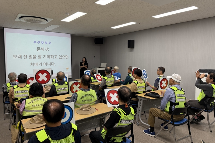 이번 교육은 치매안심센터 회의실에서 아동안전지킴이 17명을 대상으로 진행됐으며, △미성년자가 낯선 사람이나 동물로부터 위협을 받을 때 대처 방법 △사고 및 길 잃은 아동 보호 절차 △치매 정의와 예방 △치매 어르신의 주요 특징 △실종 치매환자 예방과 발견 시 대응 요령 등을 경찰과 협력하여 현장 중심으로 교육했다.