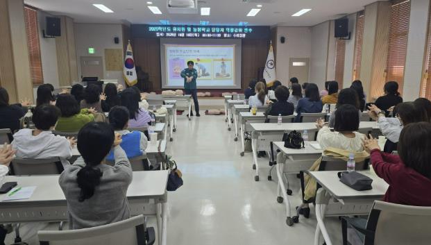 연수의 핵심 과정으로, 연천소방서 전문 강사를 초빙하여 120분간 응급처치 및 심폐소생술 교육이 진행됐다. 참석자들은 응급상황 발생 시 대처를 위한 이론 교육과 함께 심폐소생술 실습에 직접 참여하며 위기대응 능력을 강화하는 실질적인 시간을 가졌다. 이 외에도 늘봄학교 사업에 대한 안내와 홍보가 이루어졌다.