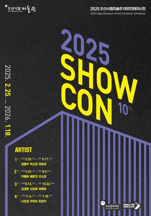 [무한뉴스=정승훈 기자] 오산시는 오산시립미술관이 11월 4일부터 2026년 1월 18일까지 2025년 야외컨테이너전 '쇼콘(SHOWCON)'의 마지막 네 번째 전시를 개최한다고 밝혔다.