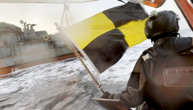 해양경찰은 도주하는 어선에 등선 방해를 위해 설치된 와이어를 절단하고 쇠창살을 피해 접근해 철조망 펜스까지 제거한 끝에 선내 진입했으며, 잠겨진 조타실 문을 열고 조타실을 제압하는데 성공했다.
