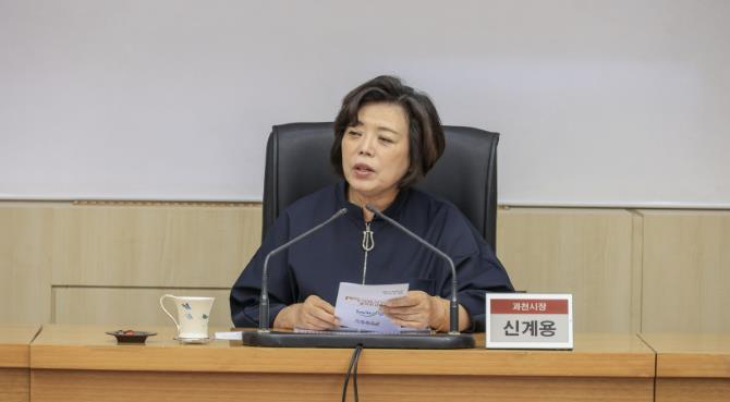 | ▲ 줄타기전수교육관 건립 기본계획수립 용역 중간보고회에서 신계용 과천시장이 발언하고 있다 |