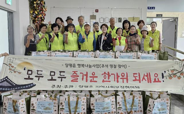 [무한뉴스=정승훈 기자] 양평군 양평읍 지역사회보장협의체는 지난 29일, 추석 명절을 맞아 복지 위기가구를 대상으로 ‘모두 모두 즐거운 한가위 되세요!’ 행복 나눔 사업을 추진했다.