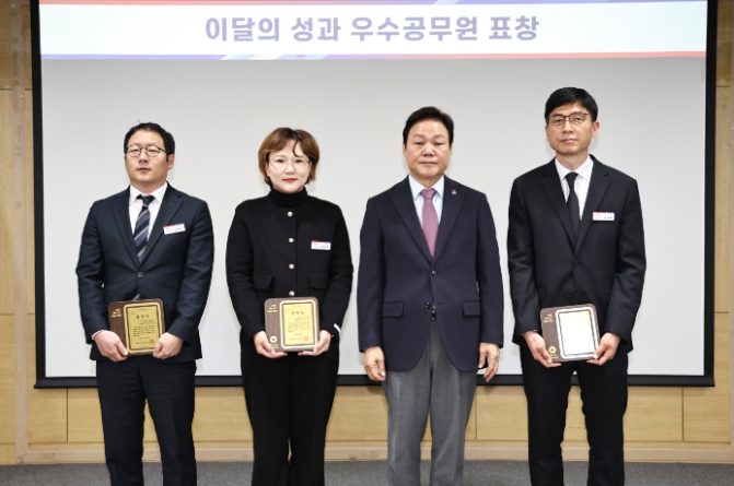 | ▲ ‘이달의 성과 우수공무원’ 3명 표창장 수여식 |