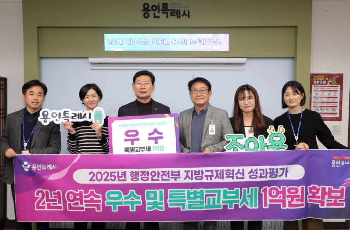 [무한뉴스=정윤식 기자] 용인특례시는 지난해에 이어 ‘지방규제혁신 성과평가’에서 우수 기관으로 선정돼 특별교부세 1억 원을 확보했다고 16일 밝혔다.