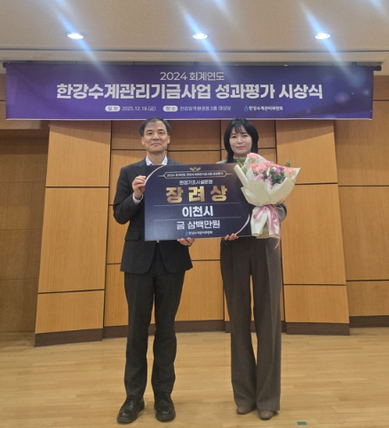[무한뉴스=정충근 기자] 이천시는 한강수계관리위원회가 실시한 ‘2024 회계연도 한강수계관리기금 성과평가’에서 환경기초시설 운영 분야 장려상을 수상했다고 밝혔다. 이천시는 이번 평가에서 31개 관리청 가운데 3위에 올랐다.