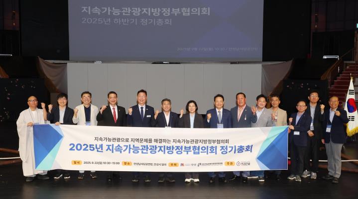 [무한뉴스=정충근 기자] 안성시는 9월 22일 안성남사당공연장에서 2025 하반기 지속가능관광지방정부협의회 정기총회를 개최했다. 이번 총회에는 협의회 15개 회원 지자체 단체장 및 관계자를 비롯해 각계 주요 인사가 참석해 지속가능관광의 정책 방향과 협력 과제를 논의했다.