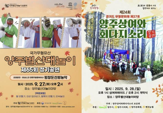[무한뉴스=정승훈 기자] 양주시가 오는 9월 27일과 28일 이틀간 양주별산대놀이마당에서 지역 대표 무형유산 정기공연을 연이어 개최한다.