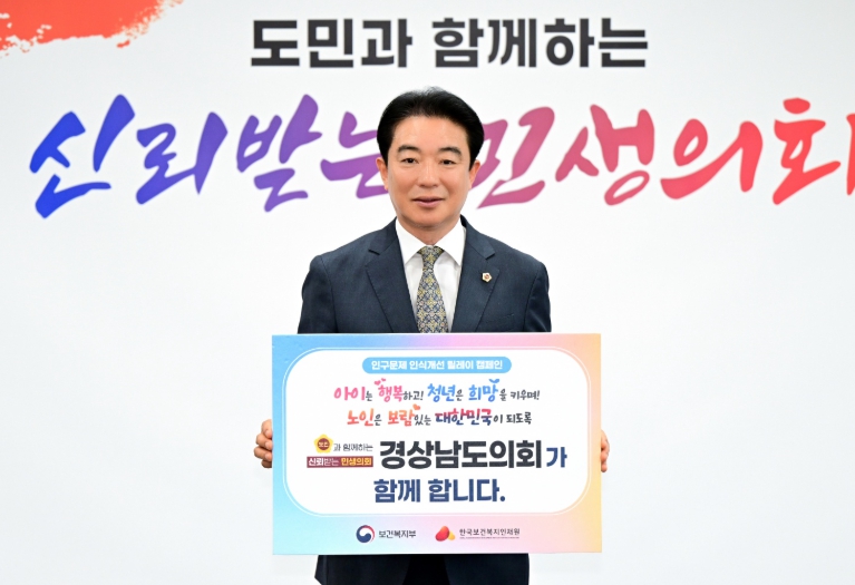 [무한뉴스=최진수 기자] 경상남도의회 최학범 의장은 2일 인구문제에 대한 사회적 공감대를 확산하기 위한 인식개선 릴레이 캠페인에 동참했다.
