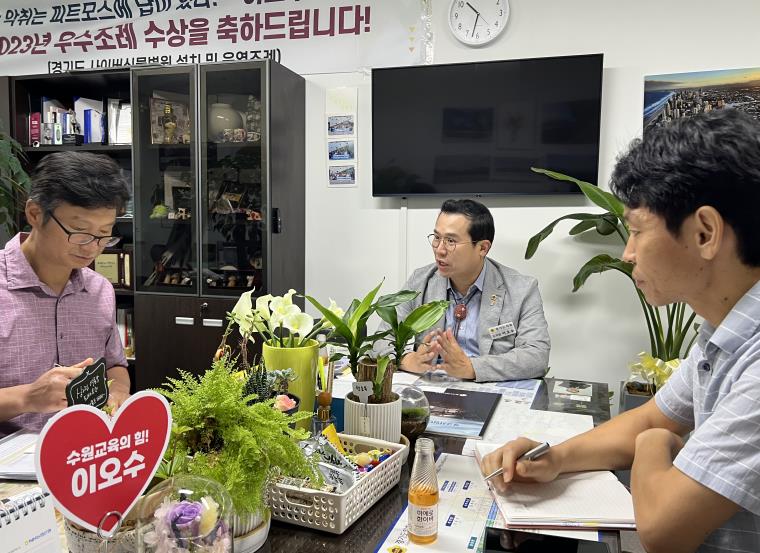 [무한뉴스=양현명 기자] 경기도의회 농정해양위원회 이오수 의원(국민의힘, 수원9)은 17일 경기도의회 의원실에서 경기도청 버스관리과 시외버스팀 관계자들과 간담회를 갖고, 광교중앙역을 경유하는 시외버스 노선 변경 방안에 대해 논의했다.