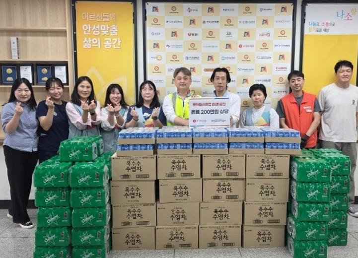 | ▲ 안성시노인복지관, 롯데칠성 안성1공장으로부터 음료 후원받아 |