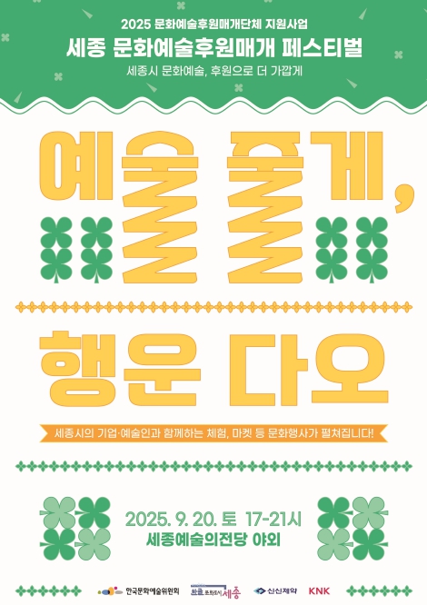 이번 행사는 한국문화예술위원회 주관 ‘2025년 문화예술후원 매개단체 지원사업’의 일환으로, 세종시문화관광재단은 지난 2023년 문화예술후원매개단체로 인증되어 세종시 기업과 예술인을 잇는 매개단체의 역할을 해오고 있다.