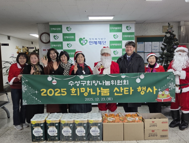 [무한뉴스=최진수 기자] 대구 수성구희망나눔위원회(회장 배영호)는 크리스마스를 앞둔 지난 23일 관내 이웃들에게 사랑과 희망을 전하는 ‘2025 희망 나눔 산타 행사’를 개최해 지역사회의 훈훈한 연말 분위기 조성에 앞장섰다.