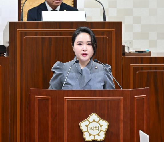 | ▲ 5분 자유발언 중인 해운대구의회 박지해 의원 |