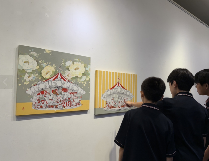주요 전시작으로 ▲대구동부초등학교 최진선 교사의 평면 작품 ‘해피 메리고라운드(Happy merry-go-round)’는 일상 속 사람들과 함께한 행복한 순간을 회전목마에 담아 희망의 메시지를 전한다.