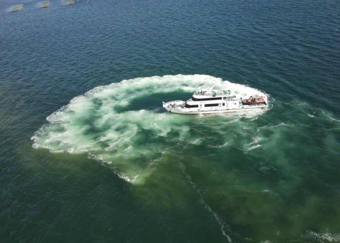 ‘경남바다호’는 90톤급 경남도의 다목적 어업지도선이다. 최근 피해가 급증한 적조 확산을 막기 위해 신속히 현장에 투입돼 방제 활동을 펼치며, 피해 최소화를 위한 컨트롤 타워 역할을 하고 있다.