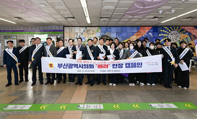 [무한뉴스=최진수 기자] 부산광역시의회는 10월 29일 오늘 오전 8시, 도시철도 사상역 역사 및 야외 열린공간에서‘부산광역시의회 공익캠페인 '배려〉’ 현장 캠페인과 함께‘찾아가는 현장소통’제2회 행사를 통합 개최했다.
