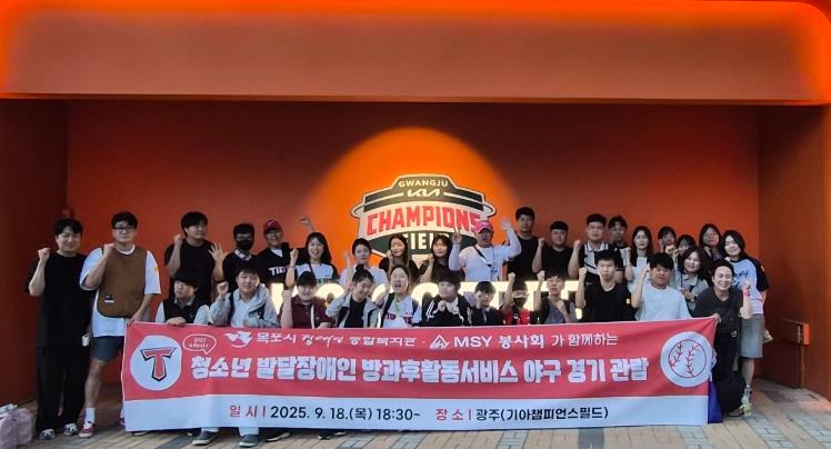 [무한뉴스=정민정 기자] 목포시장애인종합복지관은 9월 18일 청소년 발달장애인 방과후활동서비스 참여학생 15명과 MSY봉사회 회원 14명이 함께 광주-기아 챔피언스 필드를 찾아 기아 타이거즈와 한화 이글스의 프로야구 경기 관람 체험활동을 진행했다.