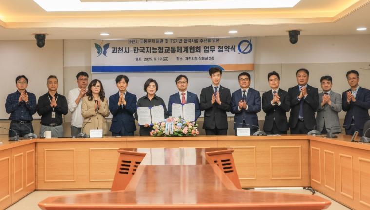 [무한뉴스=손성기 기자] 과천시는 19일 시청 상황실에서 한국지능형교통체계협회(ITS Korea)와 ‘교통문제 해결 및 ITS 기반 협력사업 추진’을 위한 업무협약을 체결했다. 협약식에는 신계용 과천시장과 한국지능형교통체계협회 허청회 회장이 참석해 협약서에 서명했다.
