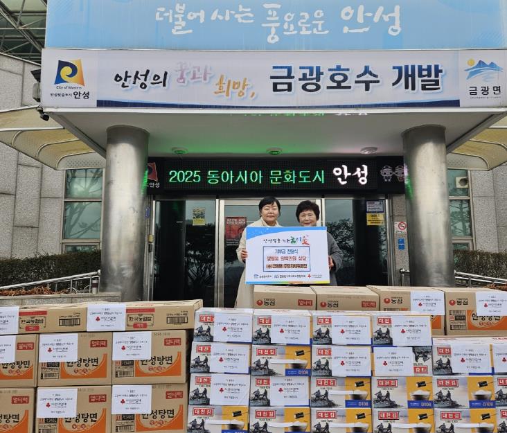 [무한뉴스=정충근 기자] 안성시는 12월 23일, 금광면 주민자치위원회 양영순 위원장이 겨울철 취약계층 가구의 따뜻한 겨울나기를 돕기 위해 라면, 김 등 생필품 100만원 상당을 금광면 행정복지센터에 기탁했다고 밝혔다.