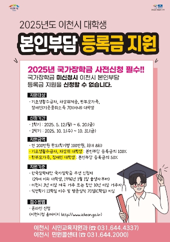 | ▲ 이천시, 2025년 2학기 저소득층 대학생 본인부담등록금 지원 신청 안내 |
