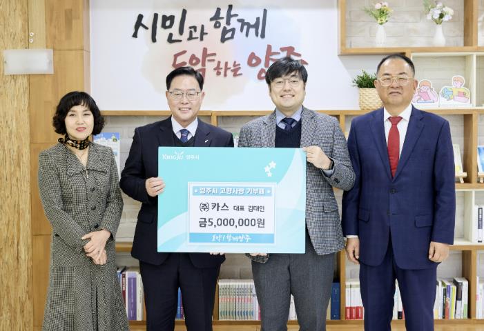 [무한뉴스=정승훈 기자] 양주시에 소재한 전자저울 전문기업인 ㈜카스가 지역 발전을 위해 양주시에 고향사랑기부금 500만 원을 기탁했다.