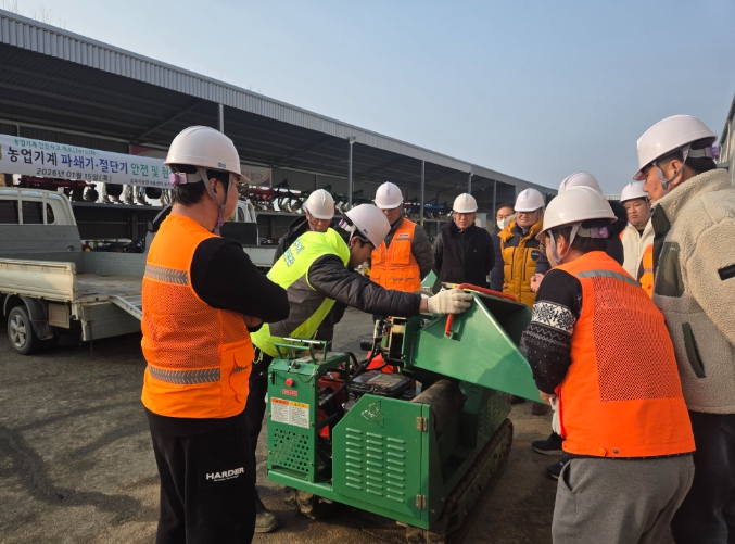 이날 교육은 농업진흥과 농기계팀의 영농부산물 파쇄 시 주요 재해인 장비 상하차, 신체 끼임 등에 대응한 안전 이론교육과 실습을 진행했으며, 토의를 통한 위험성평가표 및 일일 점검일지 평가표 작성 등 안전교육을 실시했다.
