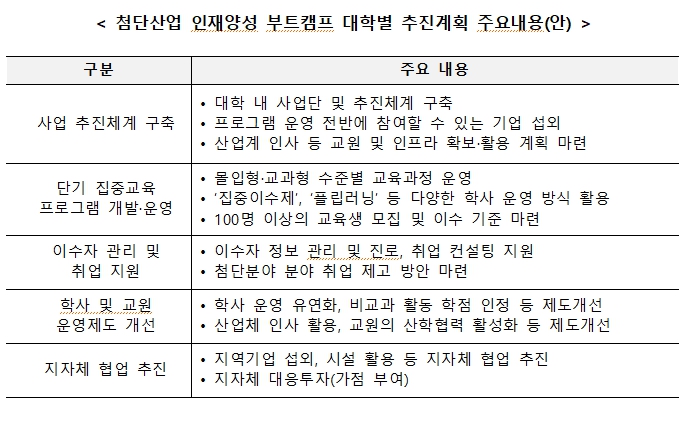 | ▲ 2026년 첨단산업 인재양성 부트캠프 신규 지원계획(안) |