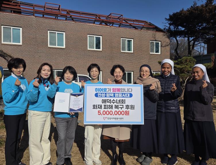 후원금 전달식은 화재 피해가 발생한 미리내성요셉애덕수녀회에서 진행됐으며, 안성·평택 영웅시대 회원들은 갑작스러운 화재로 어려움을 겪고 있는 이웃들의 일상 회복을 돕고자 십시일반 정성을 모았다.