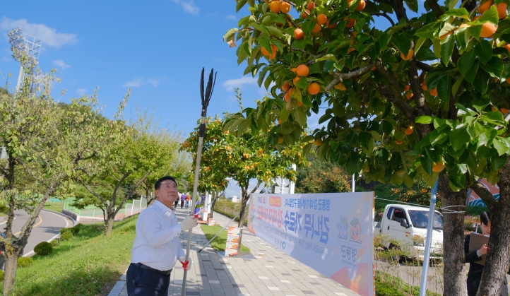 17일 용두공원 도로변에서 열린 이번 행사에는 정영철 영동군수를 비롯해 군의회 의장, 군의원, 노인회 관계자, 주민 등 50여 명이 참여해 잘 익은 감을 직접 수확하며 가을의 정취를 만끽했다.
