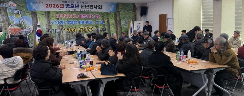 [무한뉴스=최진수 기자] 영천시 동부동체육회는 2일 동 행정복지센터 2층 회의실에서 기관단체장과 지역 원로 등 60여 명이 참석한 가운데 ‘2026년 병오년 신년인사회’를 개최하고, 새해 덕담을 나누며 동민 화합을 다졌다.