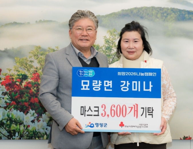 [무한뉴스=정민정 기자] 영광군은 2025년 12월 30일 묘량면에 거주하는 강미나 씨가 어려운 이웃들에게 전달해달라며 마스크 3,600개를 기탁해 희망2026나눔캠페인에 동참했다고 밝혔다.