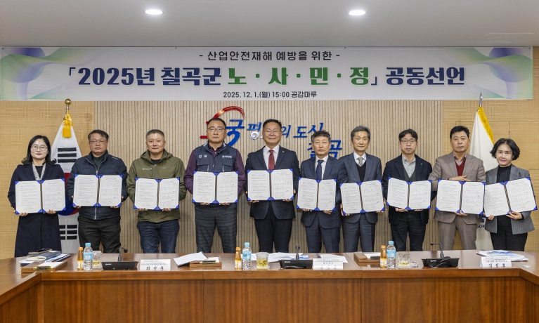 [무한뉴스=최진수 기자] 칠곡군은 12월 1일 군청 공감마루에서 2025년 칠곡군 노사민정협의회를 개최하고, 산업안전재해 예방을 위한 노사민정 공동선언문에 서명했다.