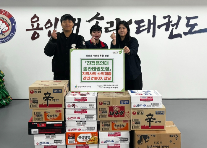 | ▲ 남양주시 진접용인대송라태권도장, 북부희망케어센터에 라면 21박스 후원 |